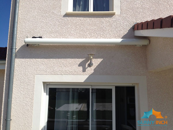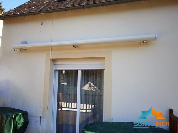 Store banne coffre intégral Manœuvre motorisée et manuelle
